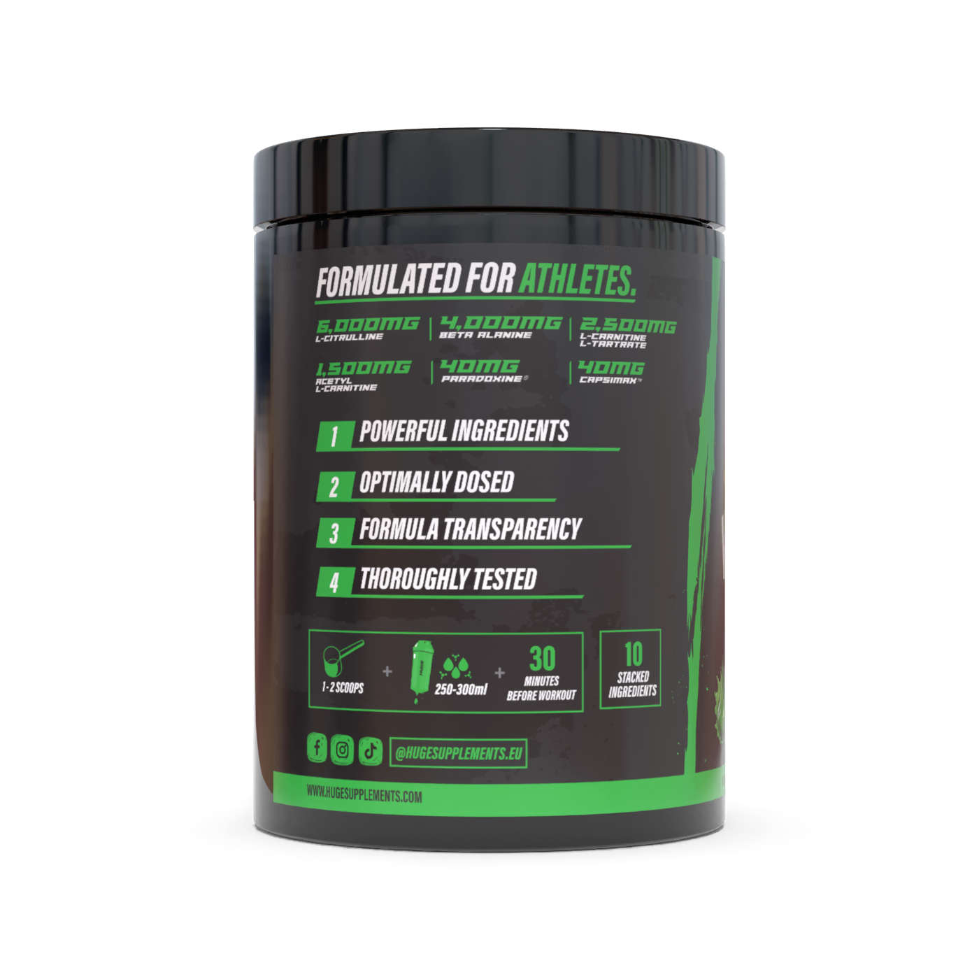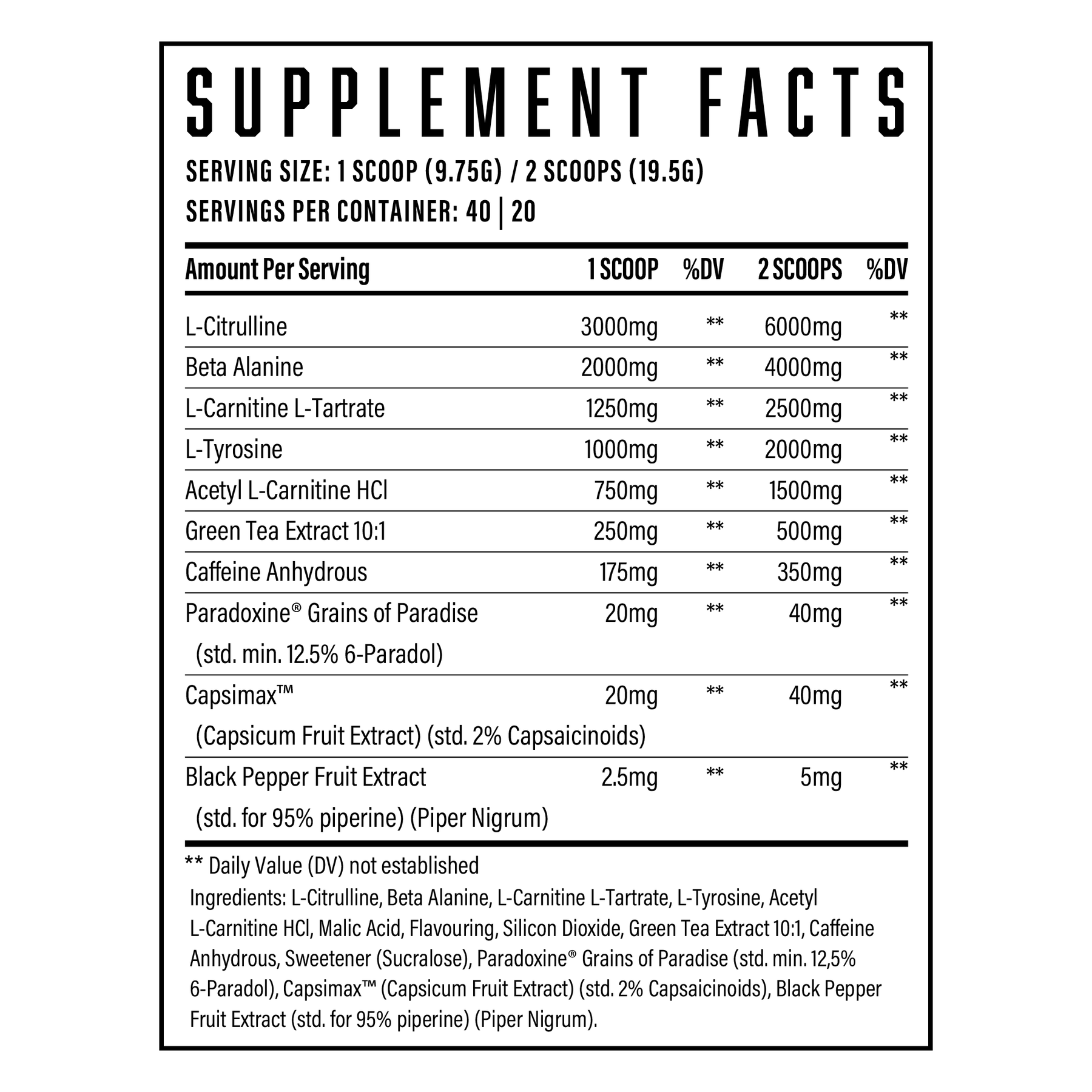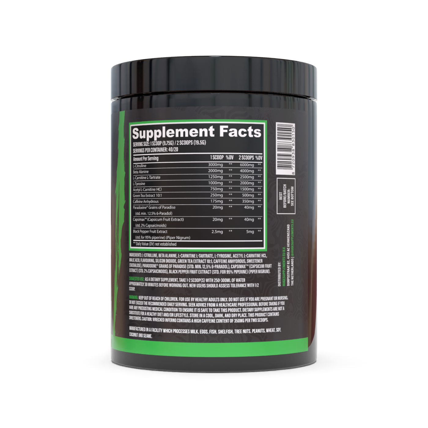 All the ingredients in Wrecked Inferno work synergistically to maximize your gym experience. Experience the effects of our thermogenic powerhouse - get ready to sweat.