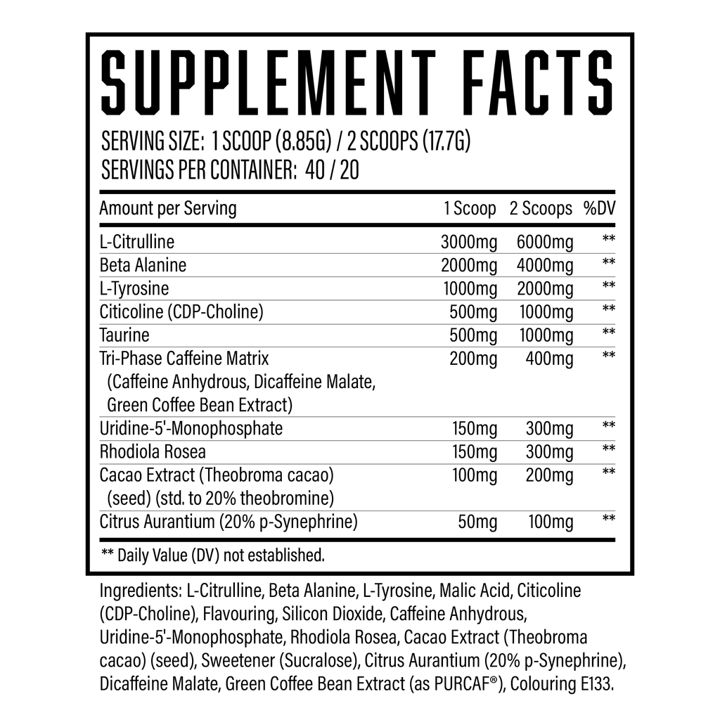 Warning: Wrecked Enraged contains a high caffeine content (387.5mg per two scoops).
